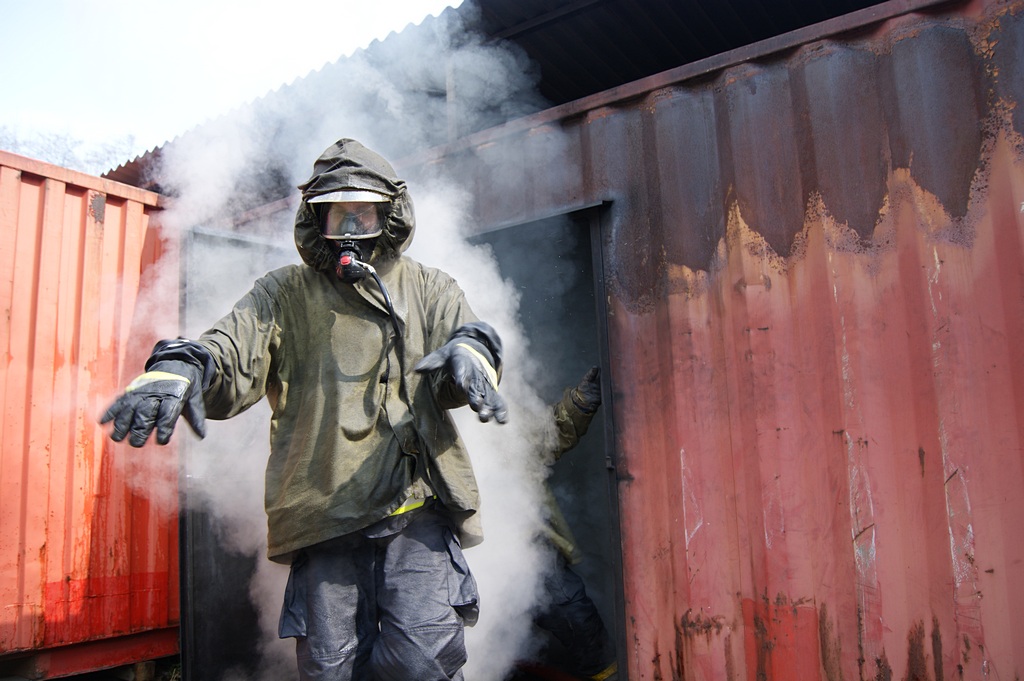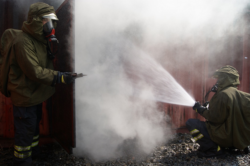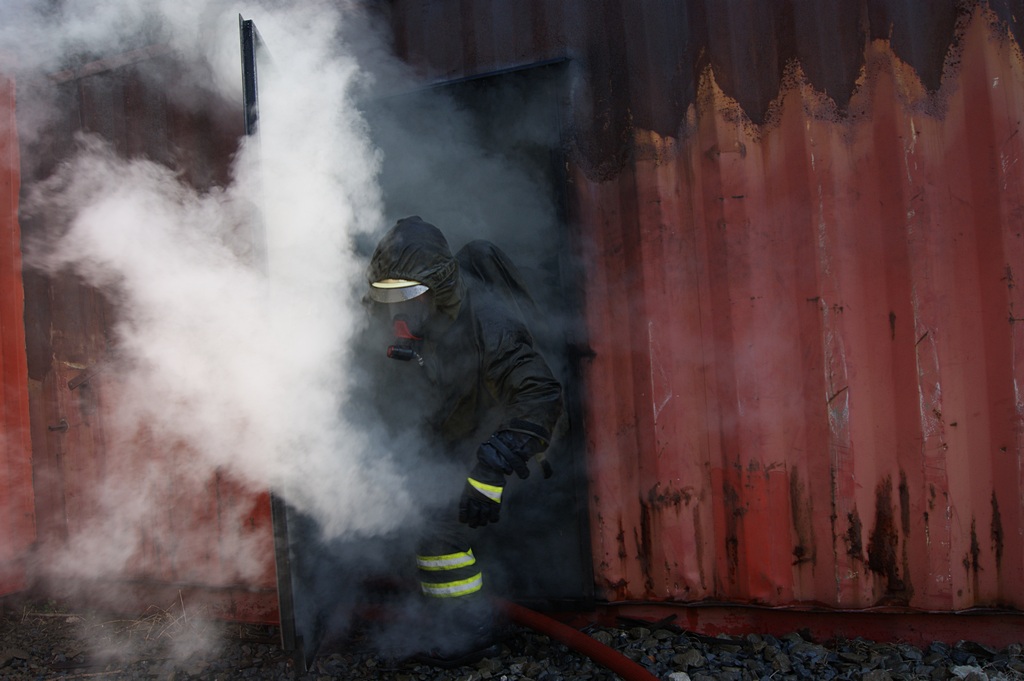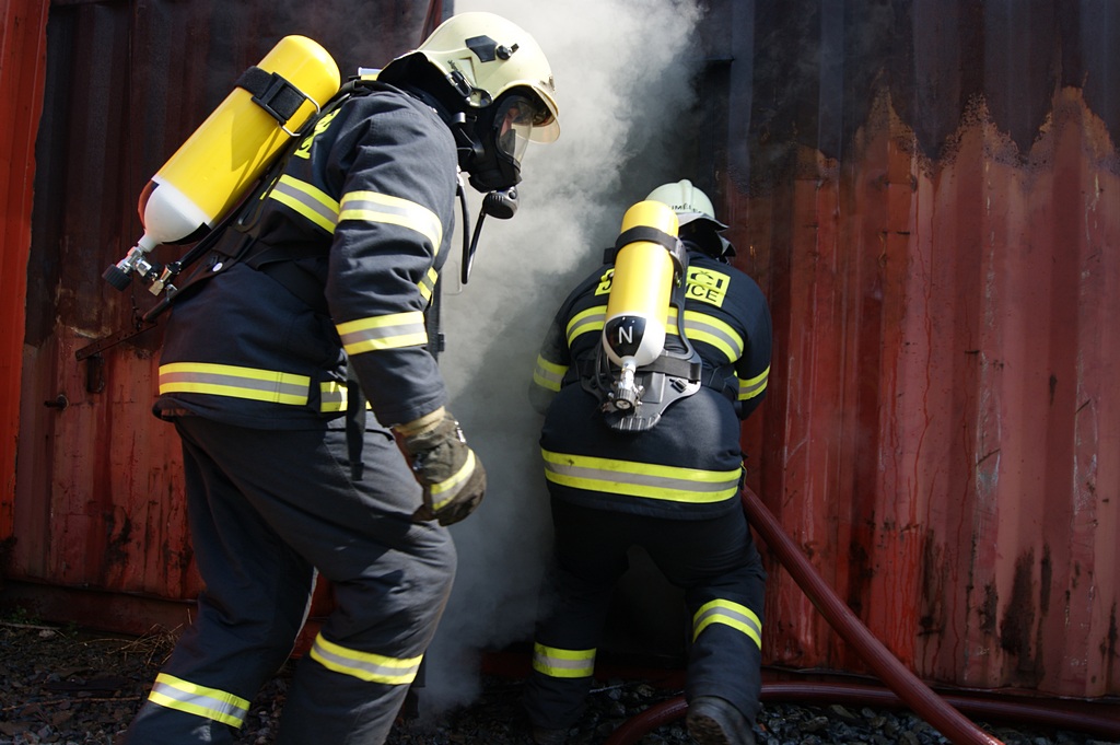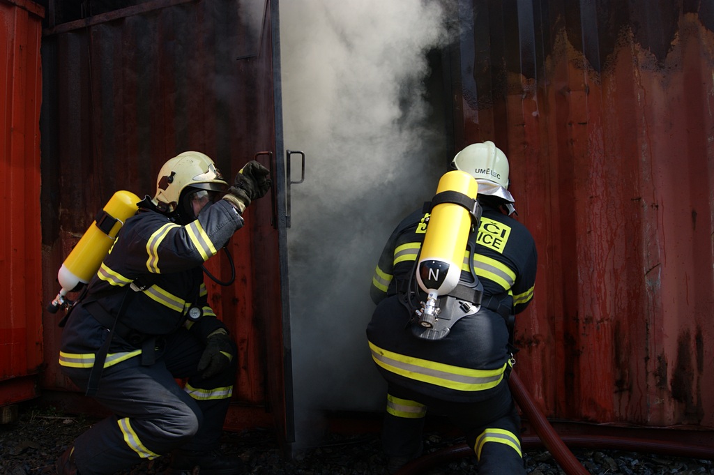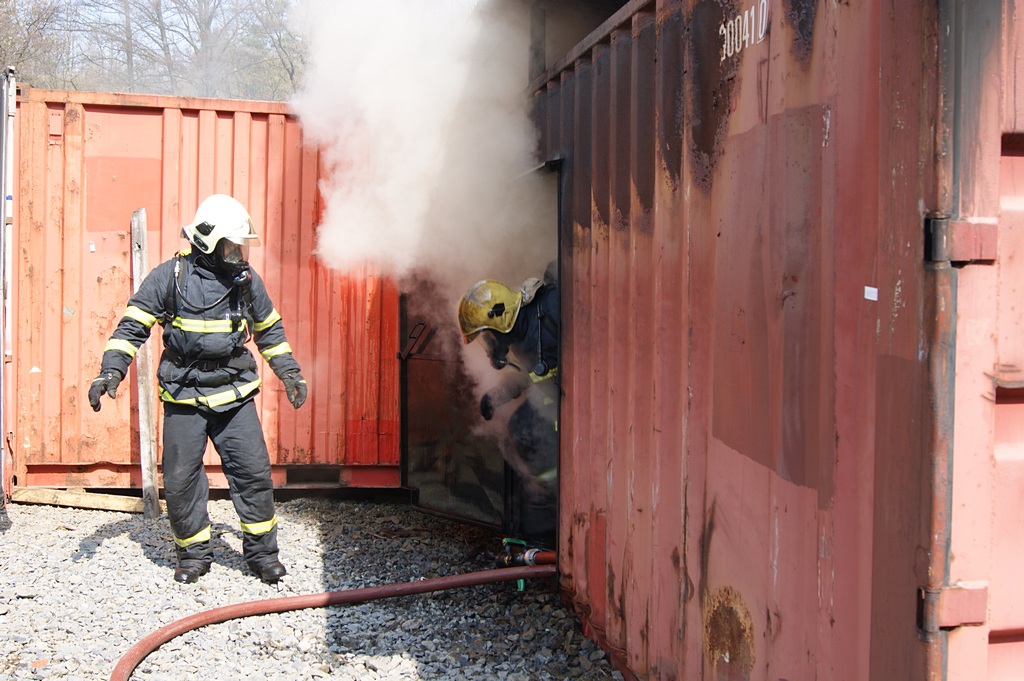 Hasiči trénují v ohnivém pekle Flashover kontejneru
