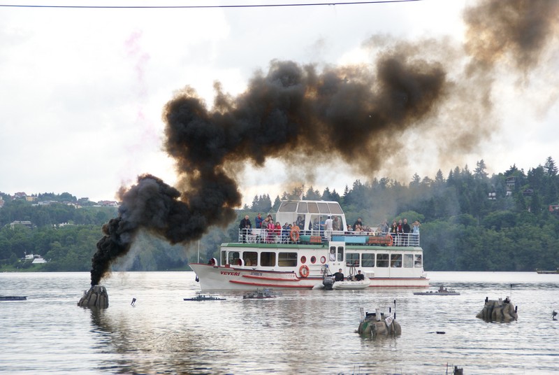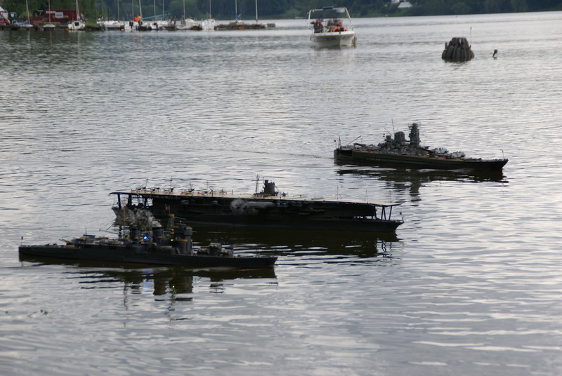 Nebojuje se však v tichomoří, ale na Brněnské přehradě. Výletní lodě totiž nahradily desítky modelů bojových lodí, letadel a ponorek, které se zúčastnily rekonstrukce bitvy o Midway...